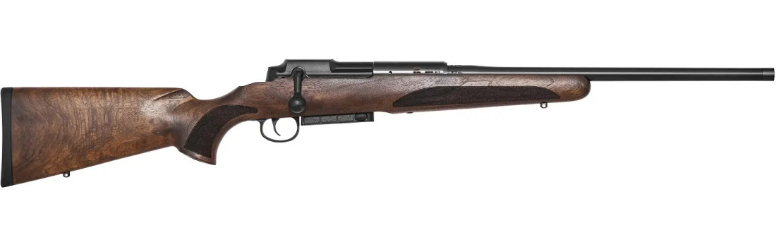 Ложе Pure виконане з горіхового дерева 1 класу у класичному стилі Classic Sporter: прямий приклад, насічки для надійного хвата та бази під антабки для рушничного ременя. Конфігурація зберігає вдалий баланс зброї: маса близько 3,2 кг і загальна довжина приблизно 100 см, що сприяє контрольованому пострілу та комфортній роботі в полі.