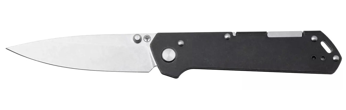 Клинок приводиться в робоче положення за допомогою шпеника, а надійний замок Back Lock фіксує його у відкритому стані, забезпечуючи безпеку під час використання. Міцне руків’я з нержавіючої сталі з обробкою Black Stonewash виконане із суцільного шматка сталі. На торці розміщений отвір під темляк та двостороння кліпса, що у поєднанні з надтонким профілем ножа дозволить зручно носити його на кишені.