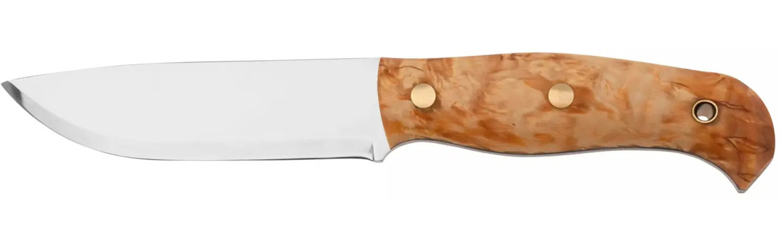 Клинок профілю Drop Point виготовлений зі сталі Sandvik 14C28N і сканді спусками. Full-tang конструкція робить цей ніж стійким до навантажень під час роботи на природі та бушкрафтингу. Руків'я виготовлене з карельської берези, має ергономічну форму та зручно лежить в руці. На кінці розміщений отвір під темляк чи ремінець. Поставляється ніж зі шкіряними піхвами для зручного зберігання та носіння.