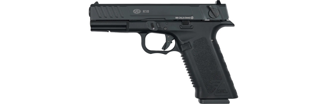 SAS K18 — пневматична репліка австрійського Glock 18. Рамка виконана з міцного полімеру, кожух затвора — металевий; конструкція розрахована на регулярні тренування. Ствол оснащено системою підкрутки Hop-Up, яка надає кулькам стабілізуючого зворотного обертання і помітно збільшує дальність польоту. Повнорозмірний магазин на 18 кульок вигідно вирізняє модель серед багатьох пневматичних аналогів.