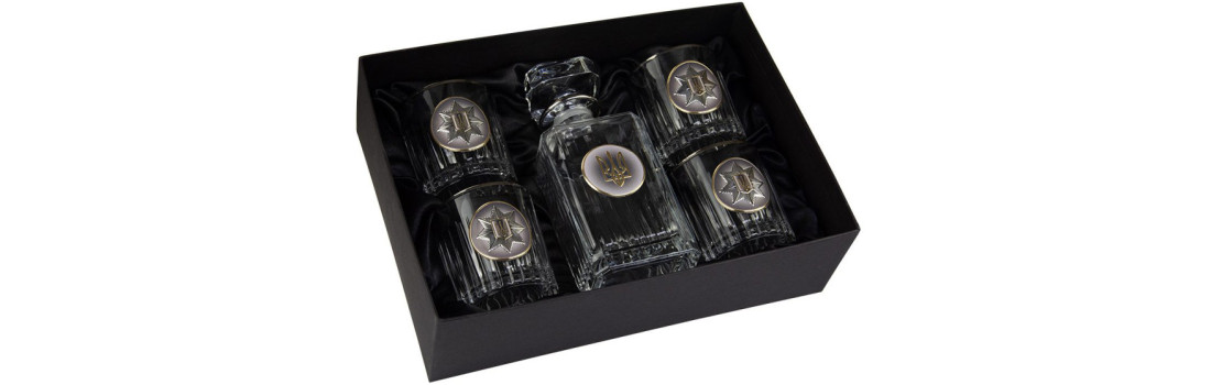 Подарунковий набір склянок для віскі Boss Crystal "Нацполіція України" із золотими накладками - це ідеальний вибір для справжніх поціновувачів розкоші та елегантності. Кожну склянку та графин виготовлено вручну з високоякісного кришталю на фабриці ART DECOR в Італії. Для створення склянок використовується сучасна технологія без використання оксиду свинцю, що робить їх екологічно безпечними.