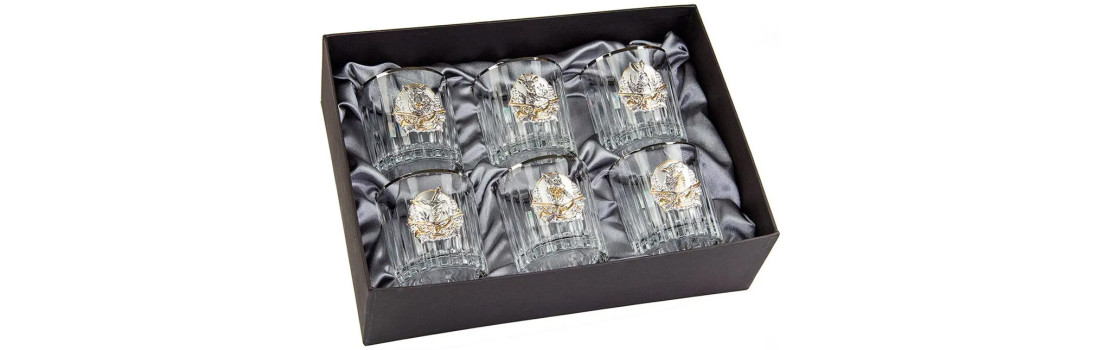 Подарунковий набір склянок для віскі Boss Crystal Boss Crystal "Полювання" - це високоякісний набір, що складається з шести склянок для віскі, виконаних з кришталю і прикрашених золотом, сріблом і платиною. Цей набір являє собою чудовий вибір для тих, хто цінує якість і розкіш у своєму житті.