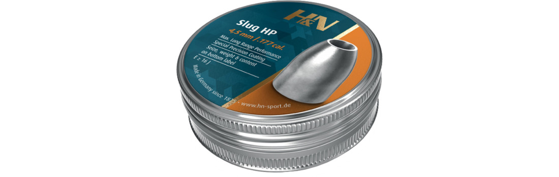 Кулі H&N Slug HP - це кулі для точної стрільби з потужних пневматичних гвинтівок по цілях, що знаходяться на відстані 50, 100, 200 метрів. Досить вигідний балістичний коефіцієнт (БК) гарантує плоску траєкторію, не втрачаючи кінетичної енергії.