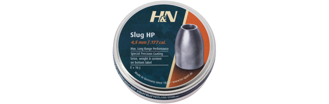 Пулі H&N Slug HP — це високоточні боєприпаси для стрільби з потужних пневматичних гвинтівок на дистанціях 50, 100 і навіть 200 метрів. Завдяки високому балістичному коефіцієнту вони летять по плоскій траєкторії, зберігаючи енергію й точність пострілу навіть на великих відстанях.