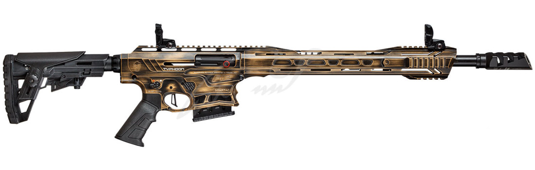Typhoon F12 – інноваційна напівавтоматична рушниця 12 калібру з газовідводною системою перезарядки. Винятковим є те, що F12 виконані в компонуванні платформи AR і практично повністю повторюють її органи управління, надаючи можливість стрільцям-практикам застосовувати вже відпрацьовані на «чорних» гвинтівках навички поводження зі зброєю.