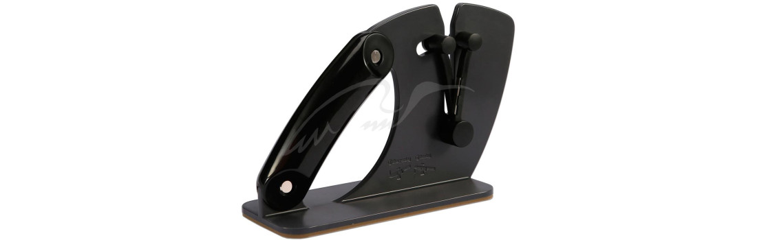 Настільне точило для кухонних ножів із змінним кутом заточування. Точильний елемент на основі карбіду вольфраму. Силіконова накладка на "підошві" вироби перешкоджає ковзанню, в тому числі - на вологих поверхнях кухонних столів.
